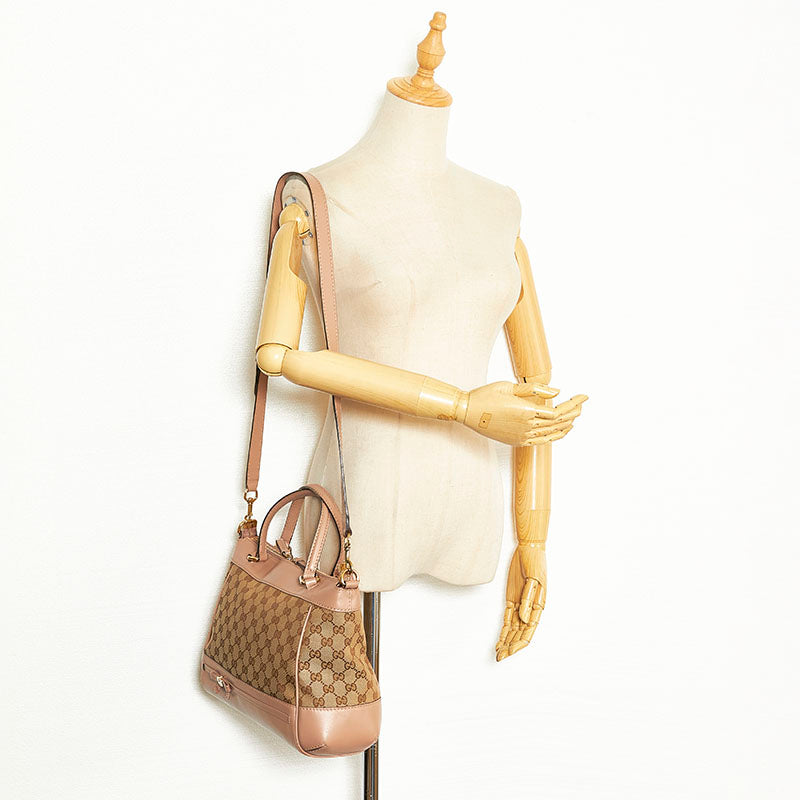 グッチ GGキャンバス ハンドバッグ ショルダーバッグ 2WAY 269894 ベージュ ピンク キャンバス レザー レディース GUCCI 【中古】