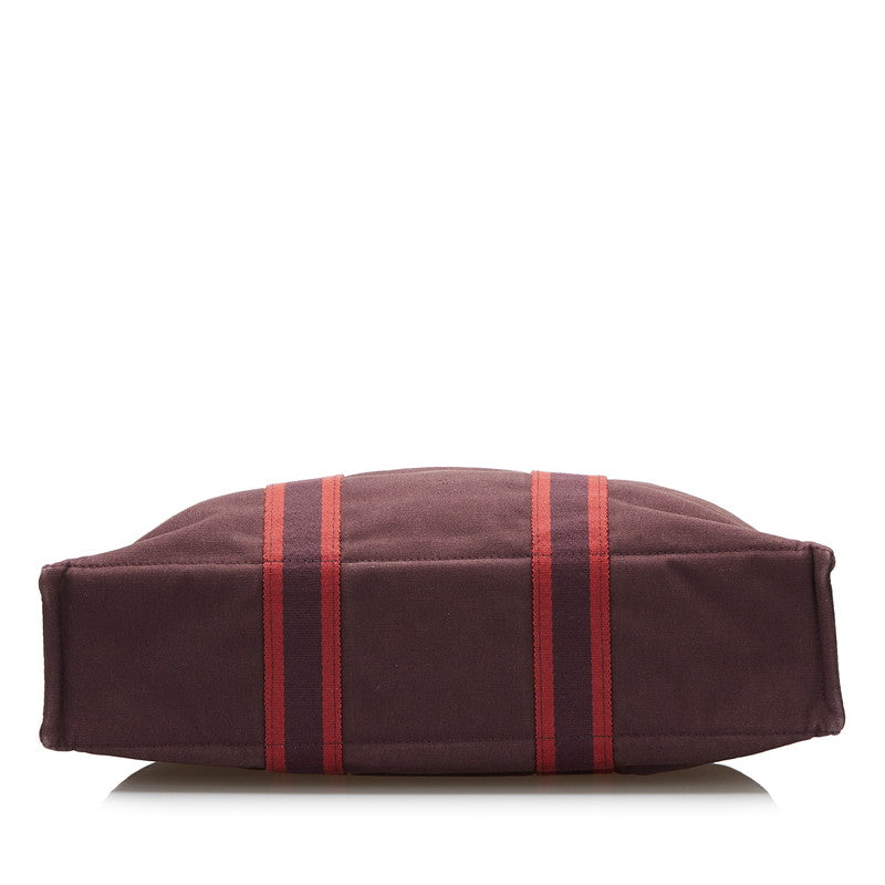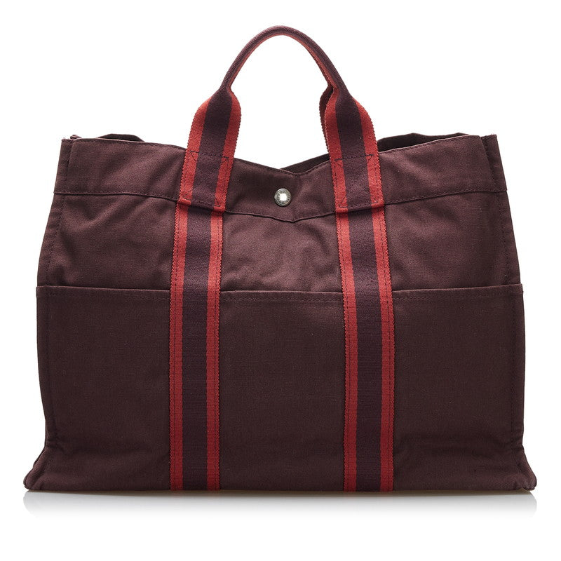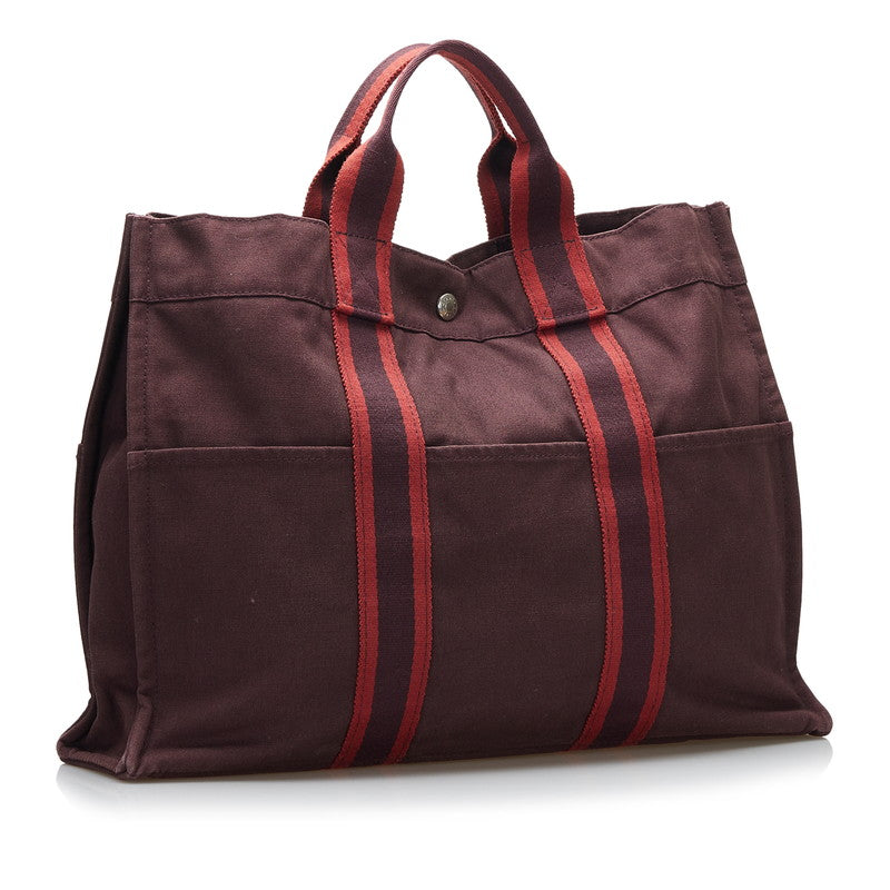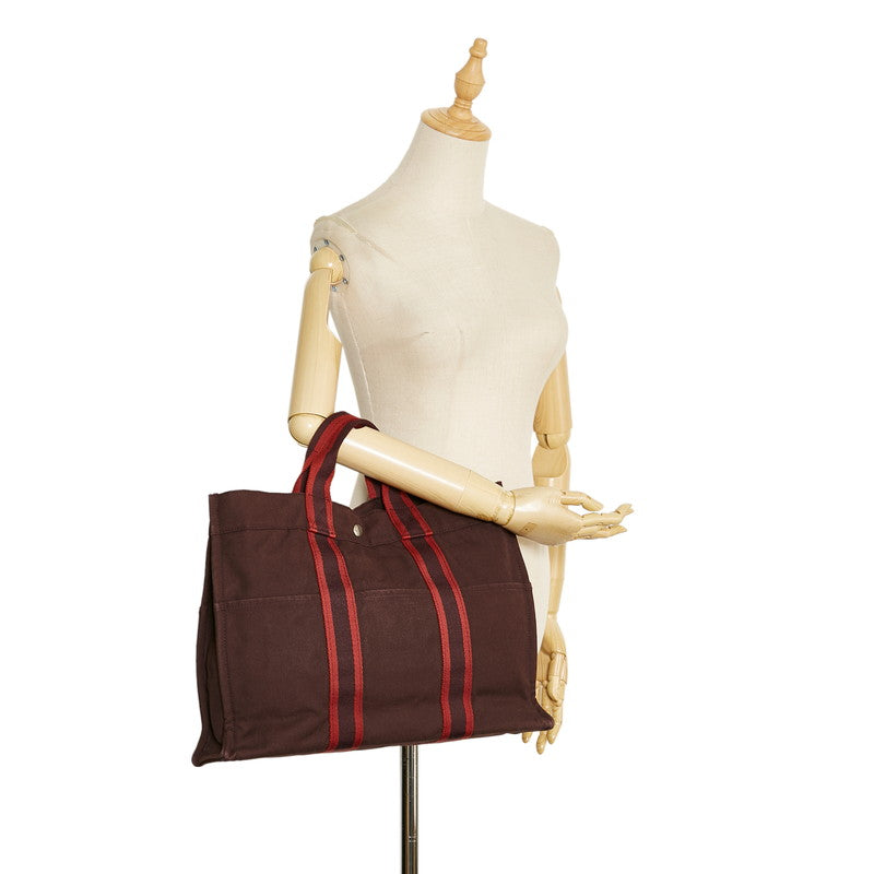 エルメス フールトゥMM ハンドバッグ ワインレッド ブラウン キャンバス レディース HERMES 【中古】