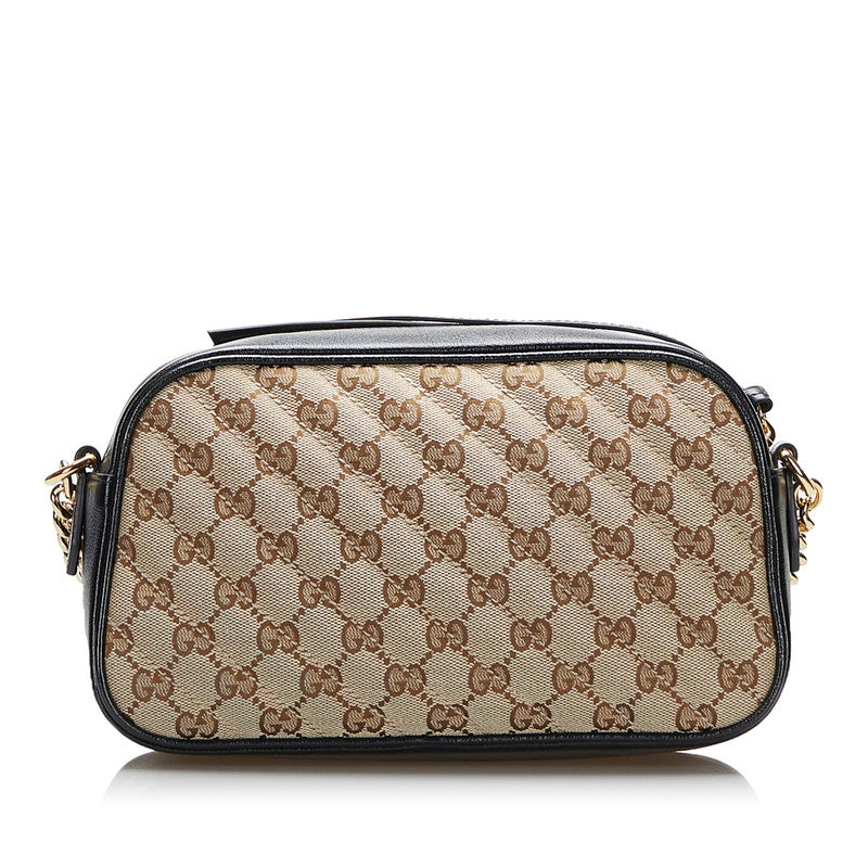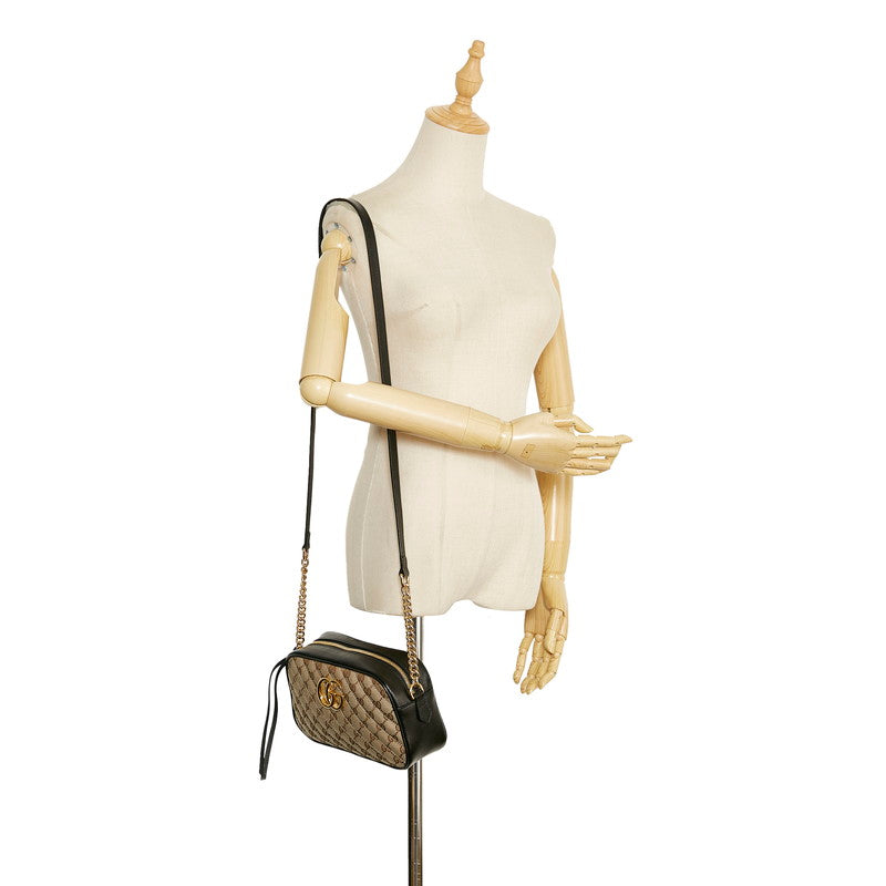 グッチ GGマーモント GGキャンバス チェーン ショルダーバッグ 447632 ベージュ ブラック キャンバス レザー レディース GUCCI 【中古】