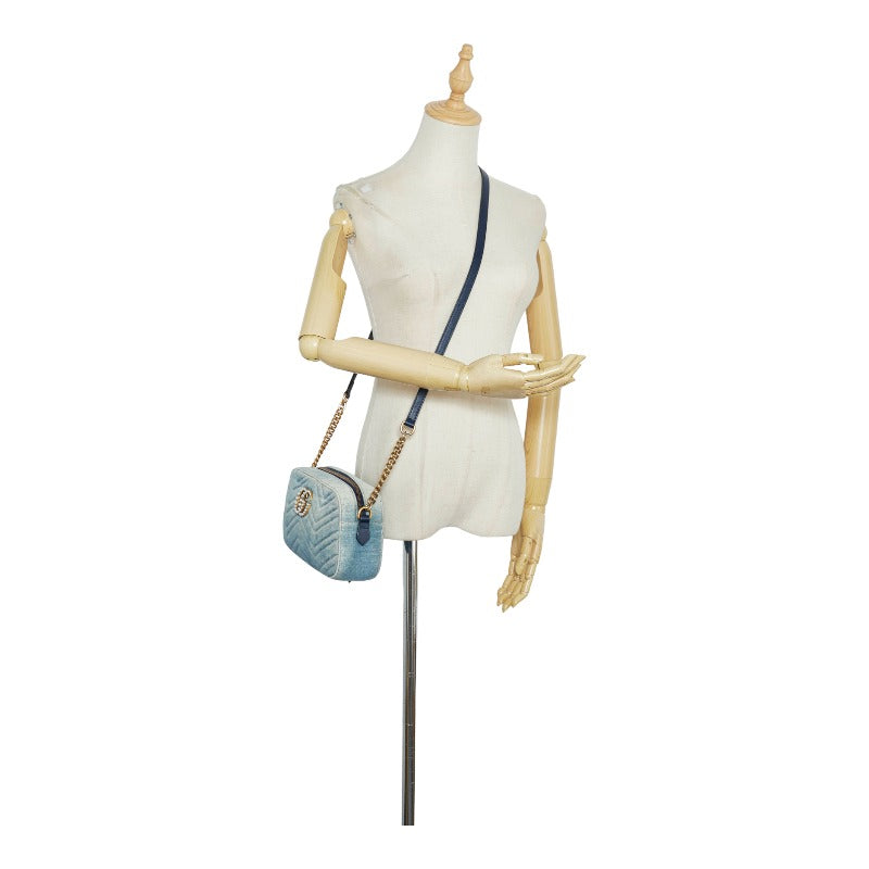 グッチ GGマーモント キルティング 斜め掛け ショルダーバッグ 447632 インディゴブルー デニム レザー レディース GUCCI 【中古】
