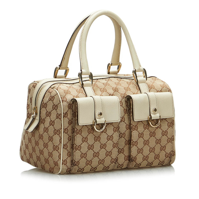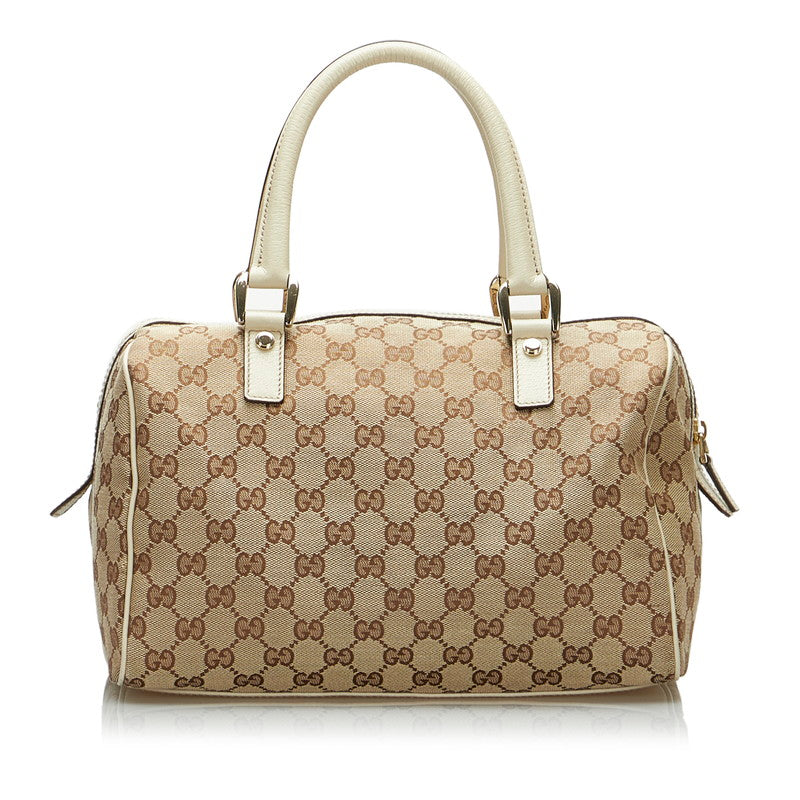 グッチ GGキャンバス ハンドバッグ 153026 ブラウン ベージュ キャンバス レザー レディース GUCCI 【中古】
