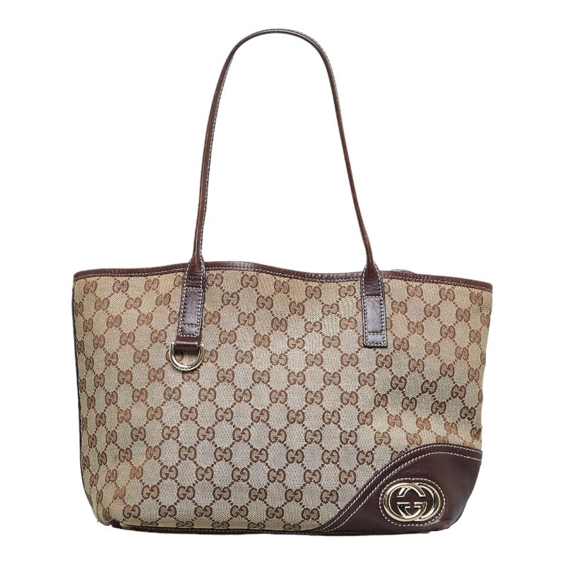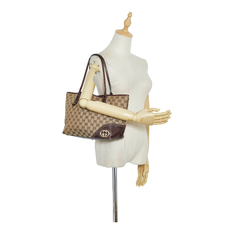 グッチ GGキャンバス ニューブリット トートバッグ ショルダーバッグ 169946 ベージュ ブラウン キャンバス レザー レディース GUCCI 【中古】