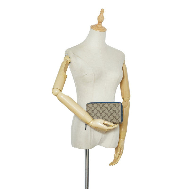 グッチ GGスプリーム ラウンドファスナー 長財布 146212 ベージュ ブルー PVC レザー レディース GUCCI 【中古】