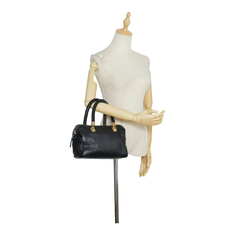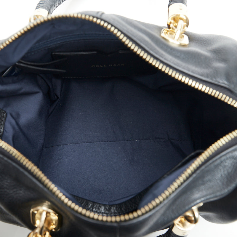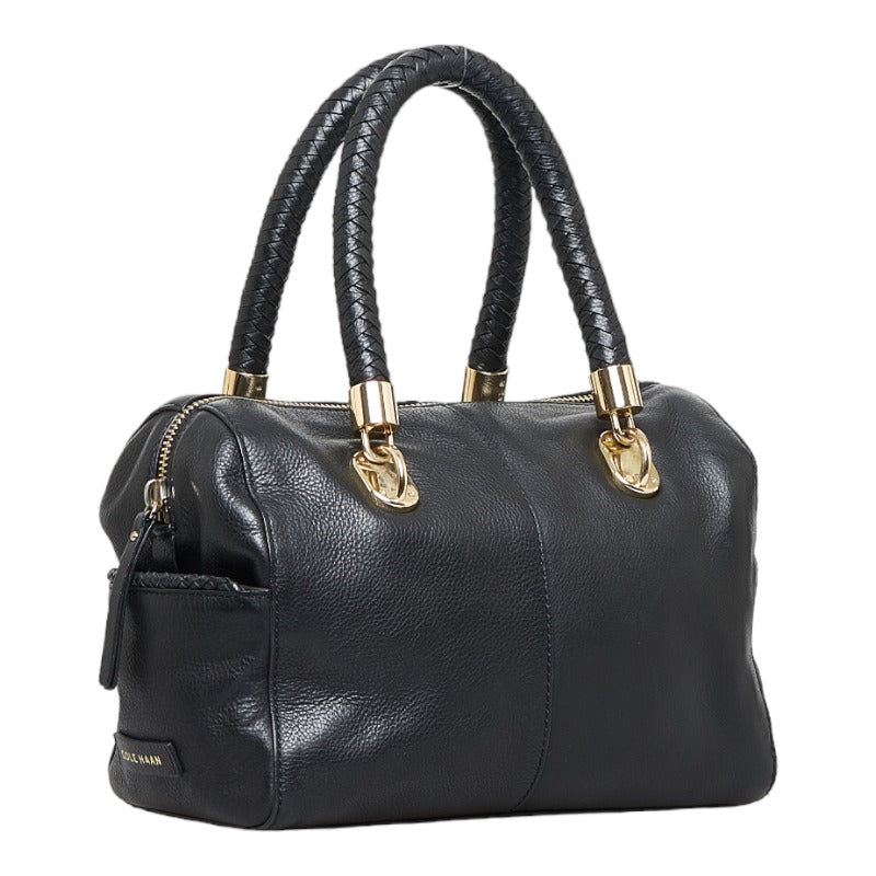 コールハーン ボストンバッグ ハンドバッグ ブラック ゴールド レザー レディース COLE HAAN 【中古】