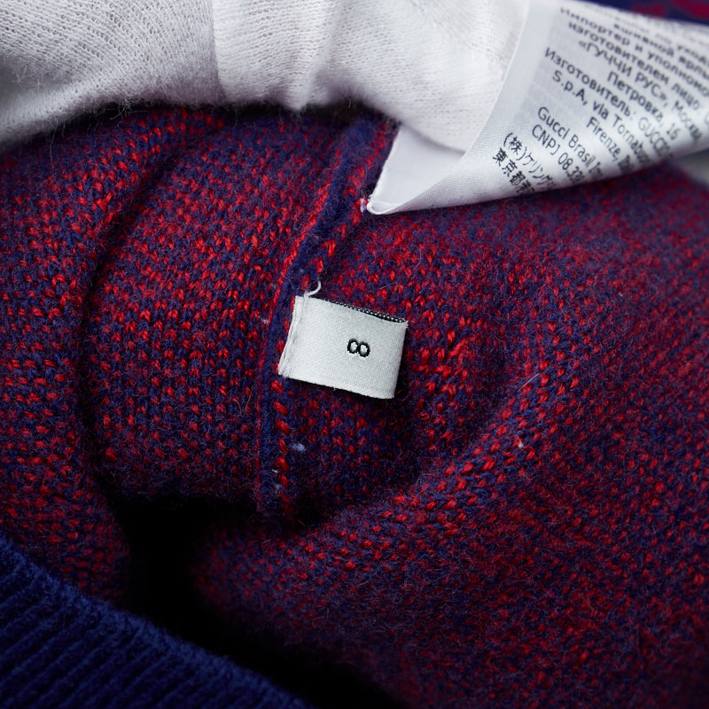 グッチ GG ニット セーター サイズ:8/130 ネイビー レッド ウール キッズ GUCCI 【中古】