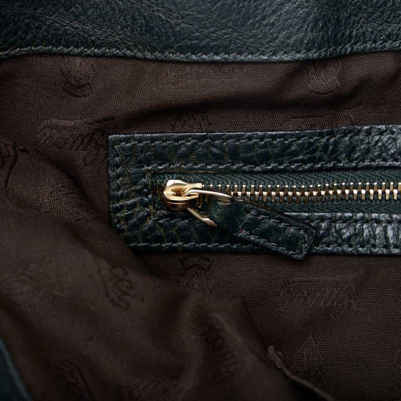 外側⇒レザーにスレ サイド⇒若干の型崩れ 底面⇒角スレ ハンドル⇒ヨレ・コバひび割れ 金具⇒小キズ・変色 開閉口⇒ヨレ・フチスレ 内側⇒開閉口付近のレザーにシワ・ファスナーポケット内側に色あせ |