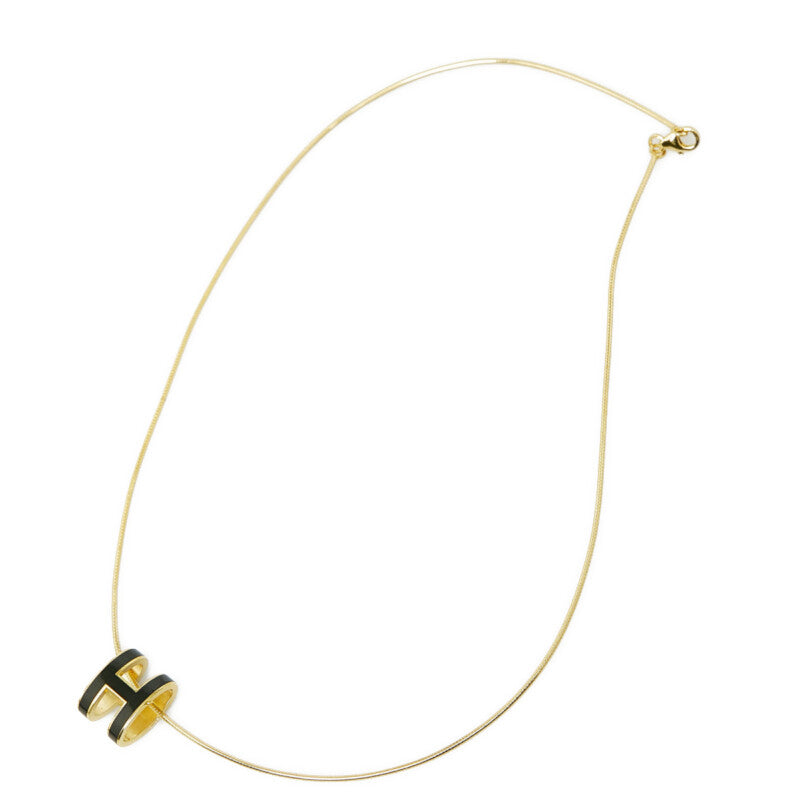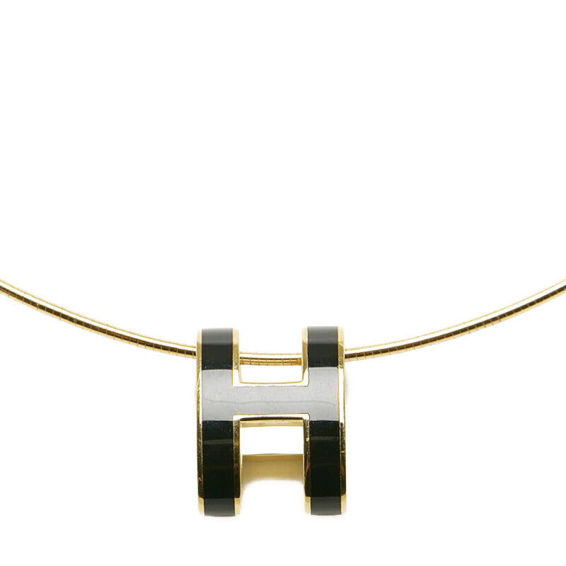 エルメス ポップアッシュ Hキューブ Hロゴ ネックレス ゴールド ブラック メッキ レディース HERMES 【中古】
