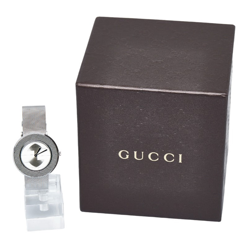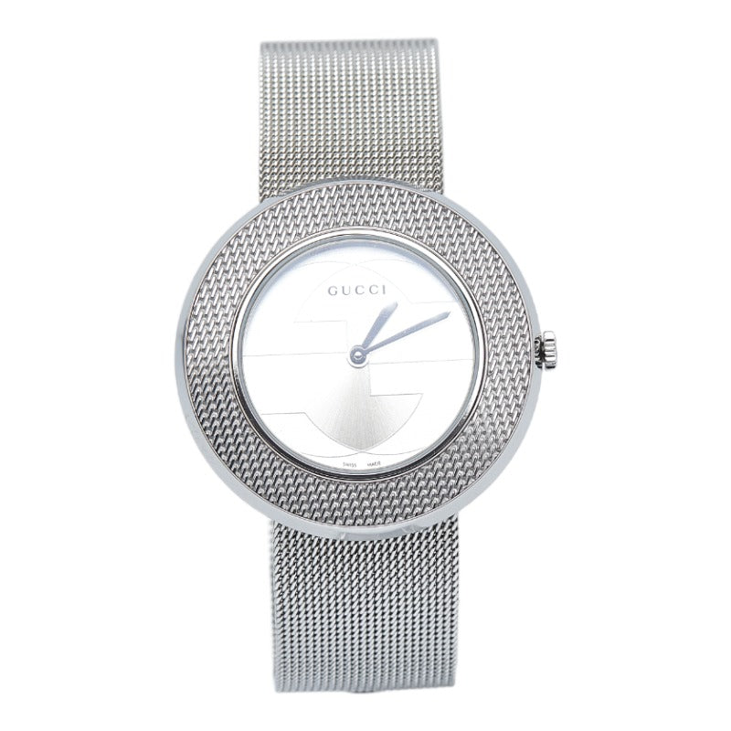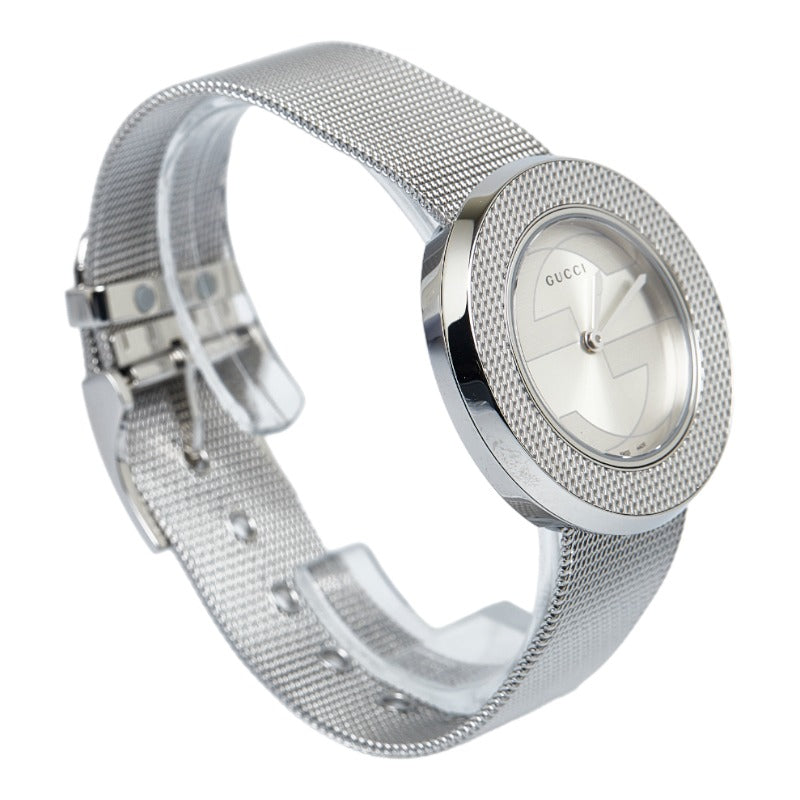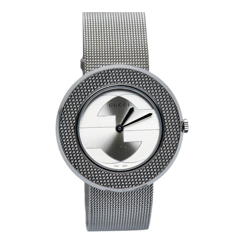 グッチ Uプレイ チェンジベゼル 腕時計 YA129.4 クオーツ シルバー文字盤 ステンレススチール レディース GUCCI 【中古】