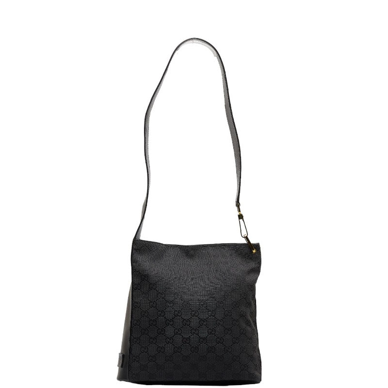 グッチ GGキャンバス ゴールド金具 ワンショルダーバッグ 91761 ブラック キャンバス レザー レディース GUCCI 【中古】