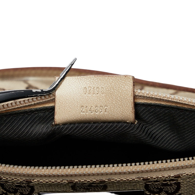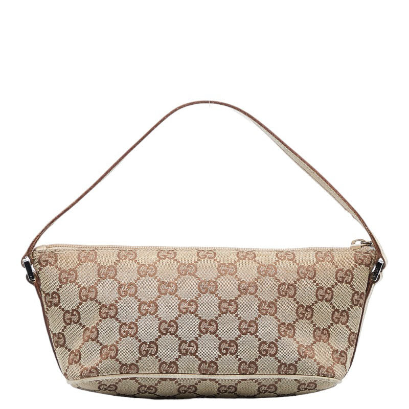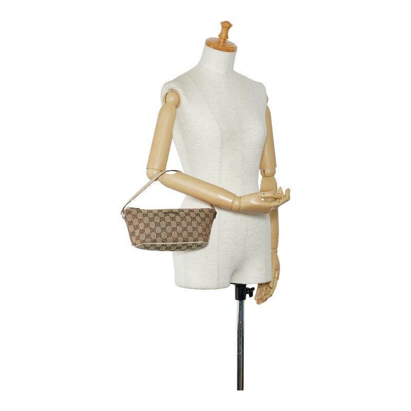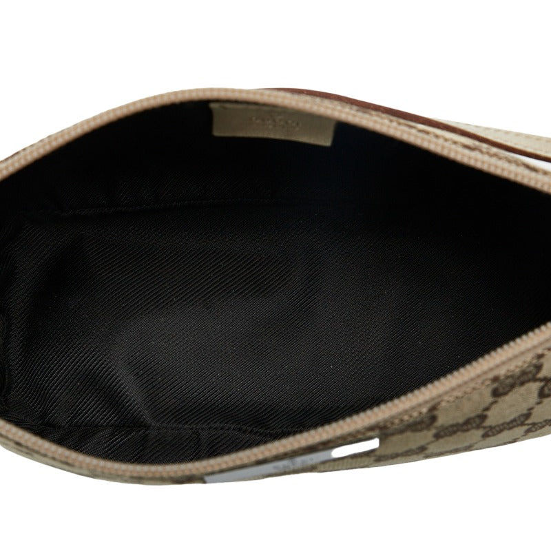 グッチ GGキャンバス アクセサリーポーチ ハンドバッグ 07198 ベージュ ブラウン キャンバス レザー レディース GUCCI 【中古】