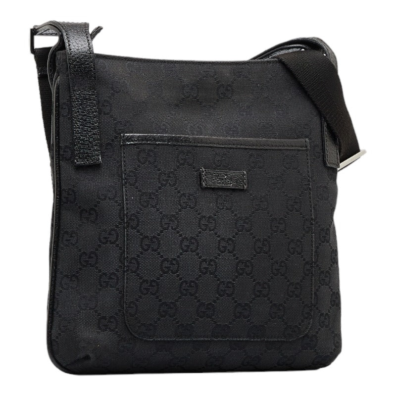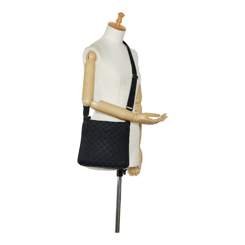 グッチ GGキャンバス 斜め掛け ショルダーバッグ 122793 ブラック キャンバス レザー レディース GUCCI 【中古】