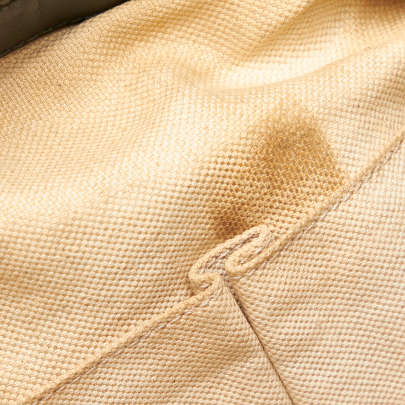 サイド⇒レザーに若干のスレ 底面⇒若干の型崩れ・キャンバスに僅かなスレ・パイピングにスレ ハンドル⇒線キズ・若干のひび割れ・コバひび割れ 金具⇒小キズ 開閉口⇒コバひび割れ 内側⇒メインに黄ばみ・複数のシミ・薄汚れ・ペン跡・ノリ染み、オープンポケット内側に黄ばみ・ペン跡、ファスナーポケット内側に黄ばみ・薄汚れ・ペン跡・開閉口付近に生地浮き、開閉口付近に薄汚れ |