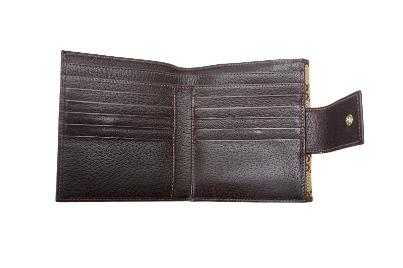 グッチ GGキャンバス アビー 二つ折り財布 141411 ベージュ ブラウン キャンバス レザー レディース GUCCI 【中古】