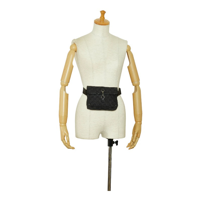 グッチ GGキャンバス ボディバッグ ウエストバッグ 92543 ブラック キャンバス レザー レディース GUCCI 【中古】