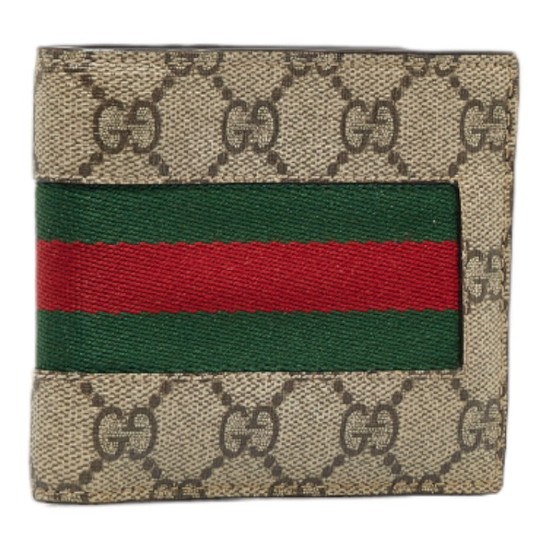 グッチ GGスプリーム ニューウェブ 二つ折り財布 408826 ベージュ PVC レザー メンズ GUCCI 【中古】