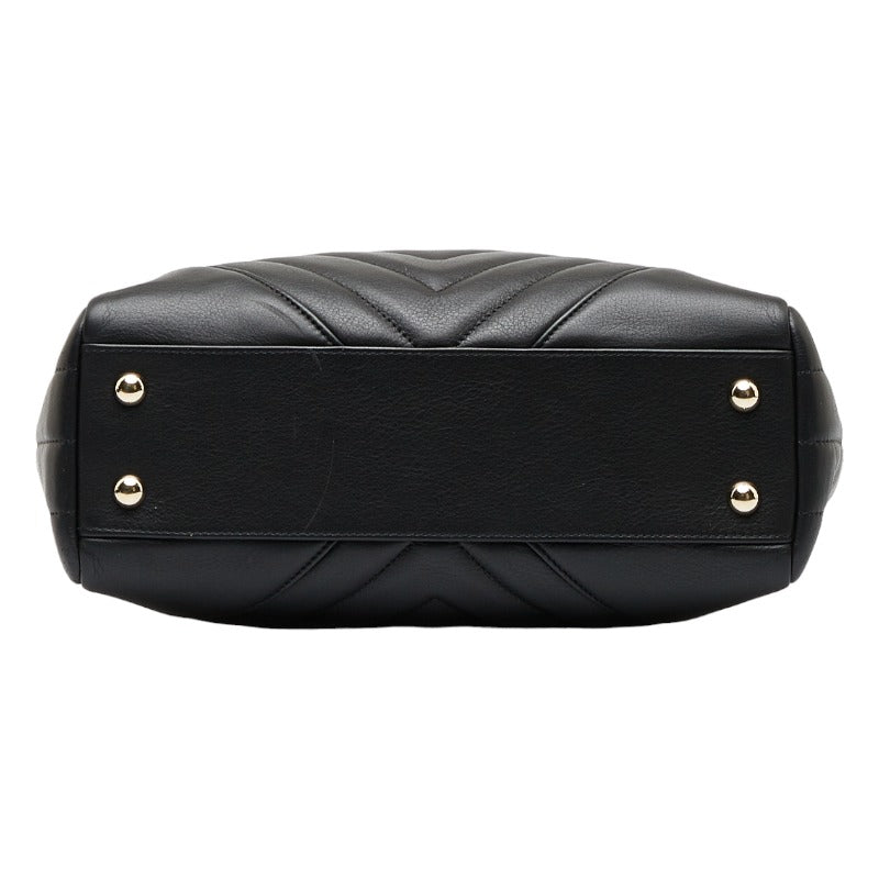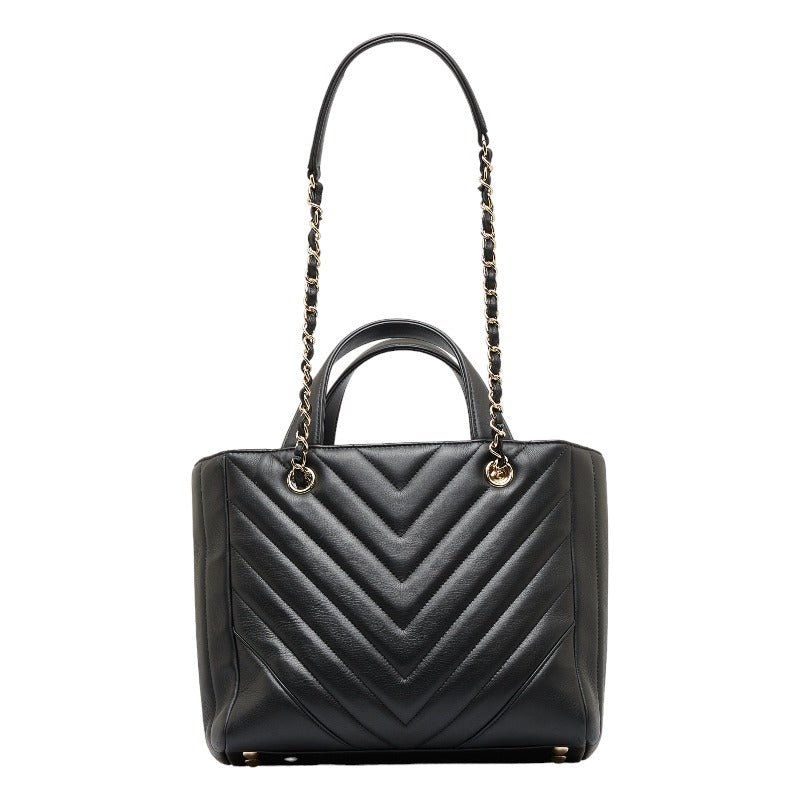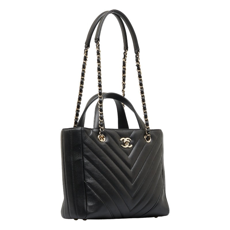 シャネル シェブロン Vステッチ ハンドバッグ ショルダーバッグ 2WAY ブラック レザー レディース CHANEL 【中古】