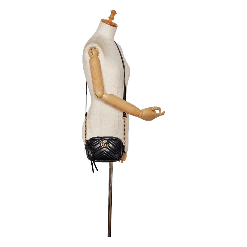 グッチ GGマーモント ミニバッグ 斜め掛け ショルダーバッグ 448065 ブラック レザー レディース GUCCI 【中古】