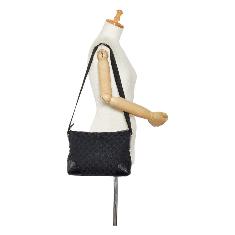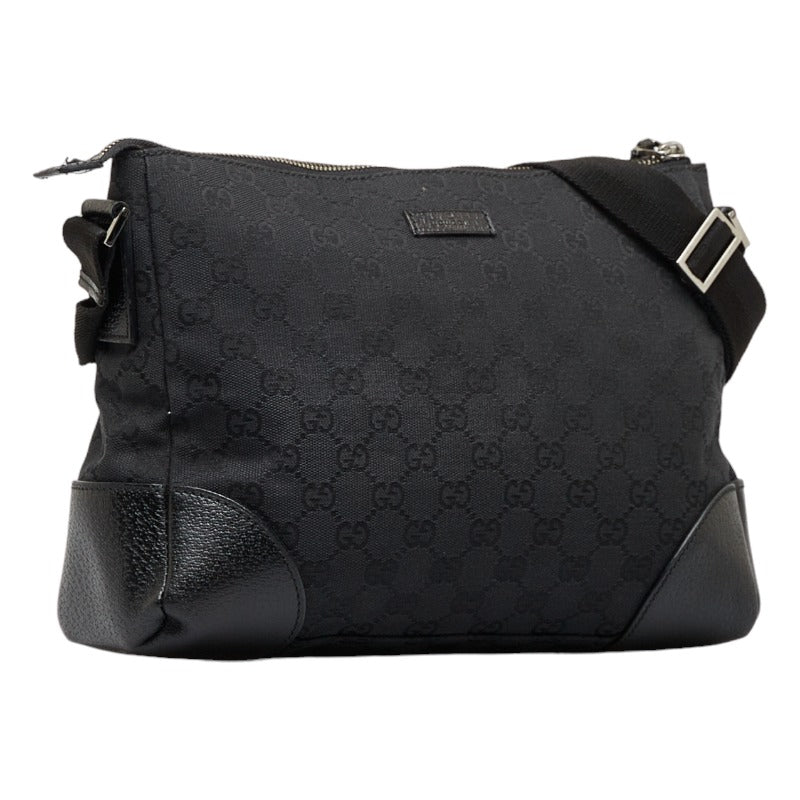 グッチ GGキャンバス 斜め掛け ショルダーバッグ 114273 ブラック キャンバス レザー レディース GUCCI 【中古】