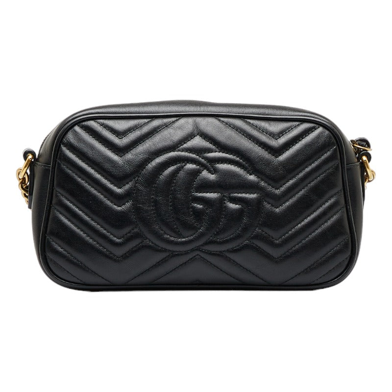 グッチ GGマーモント キルティング スモール 斜め掛け チェーン ショルダーバッグ 447632 ブラック レザー レディース GUCCI 【中古】