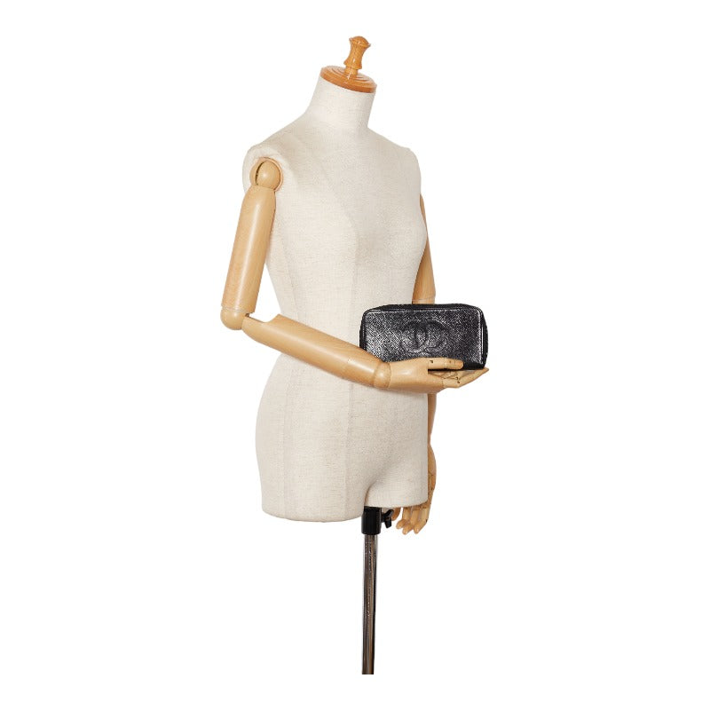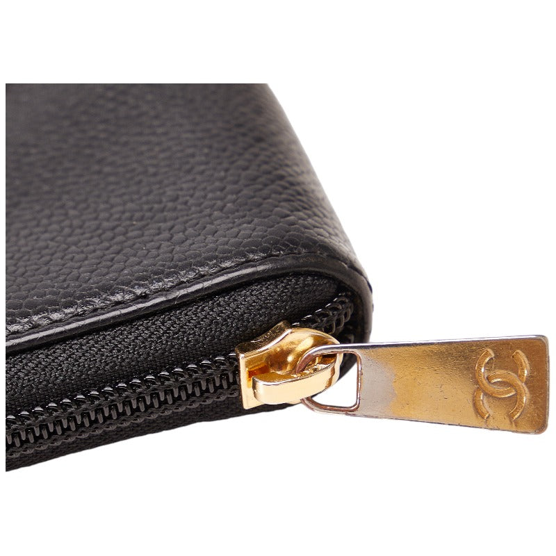 シャネル ココマーク ラウンドファスナー 長財布 ブラック キャビアスキン レディース CHANEL 【中古】