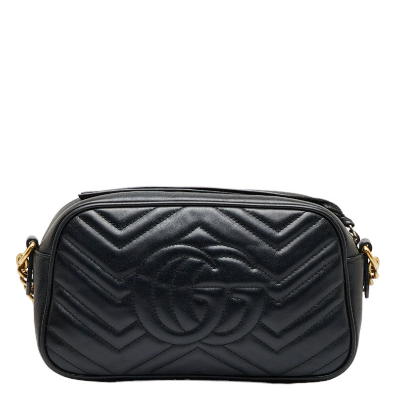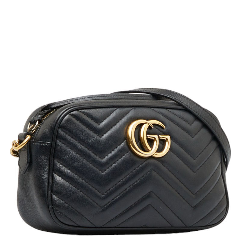 グッチ GGマーモント キルティング スモール 斜め掛け チェーン ショルダーバッグ 447632 ブラック レザー レディース GUCCI 【中古】