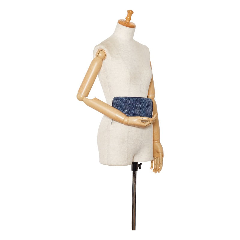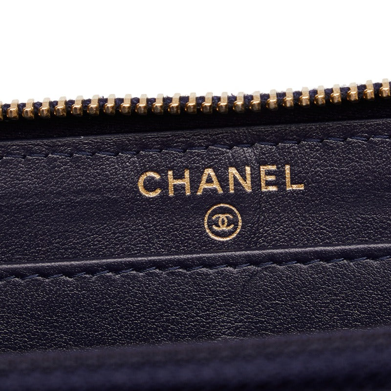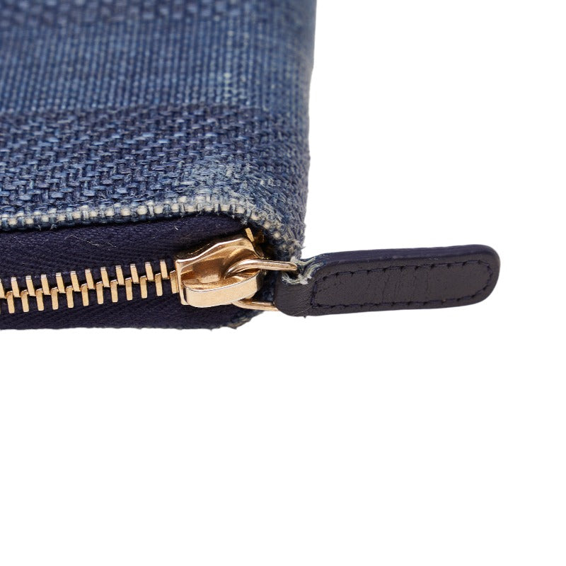 シャネル ドーヴィル 長財布 ブルー ネイビー キャンバス レザー レディース CHANEL 【中古】