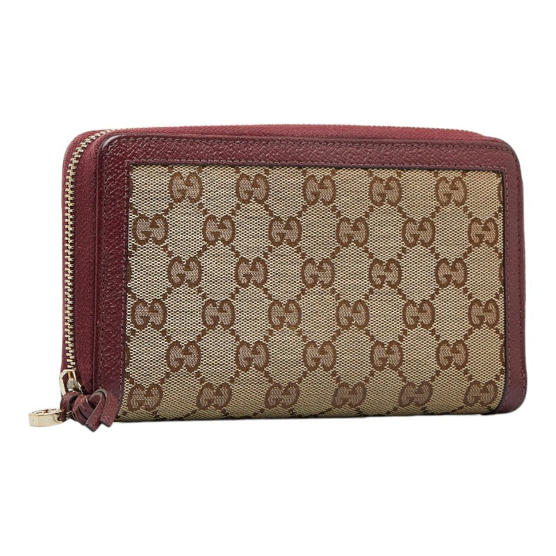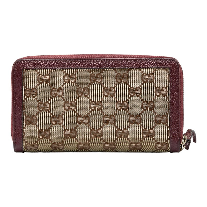 グッチ GG キャンバス 長財布 ラウンドファスナー 323397 ベージュ ワインレッド キャンバス レザー レディース GUCCI 【中古】