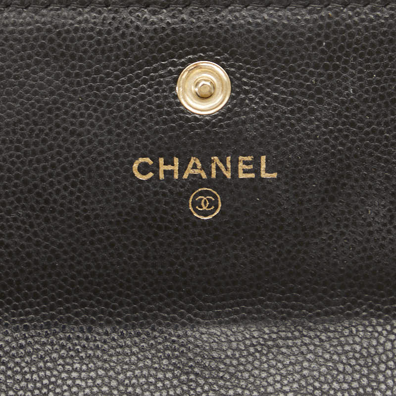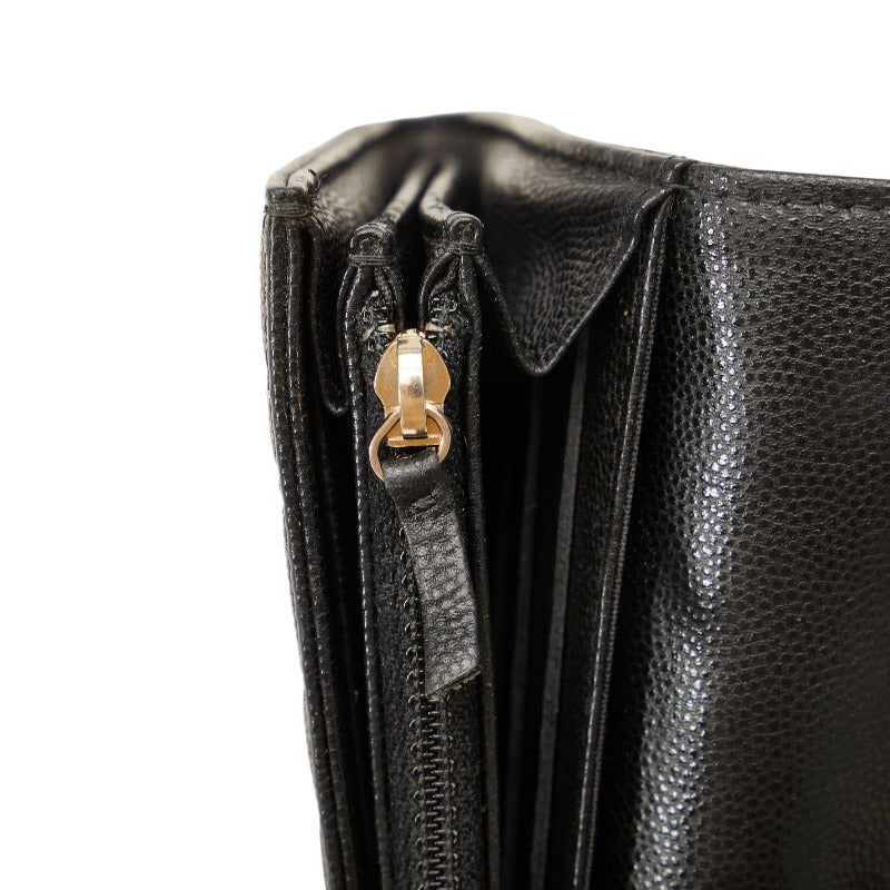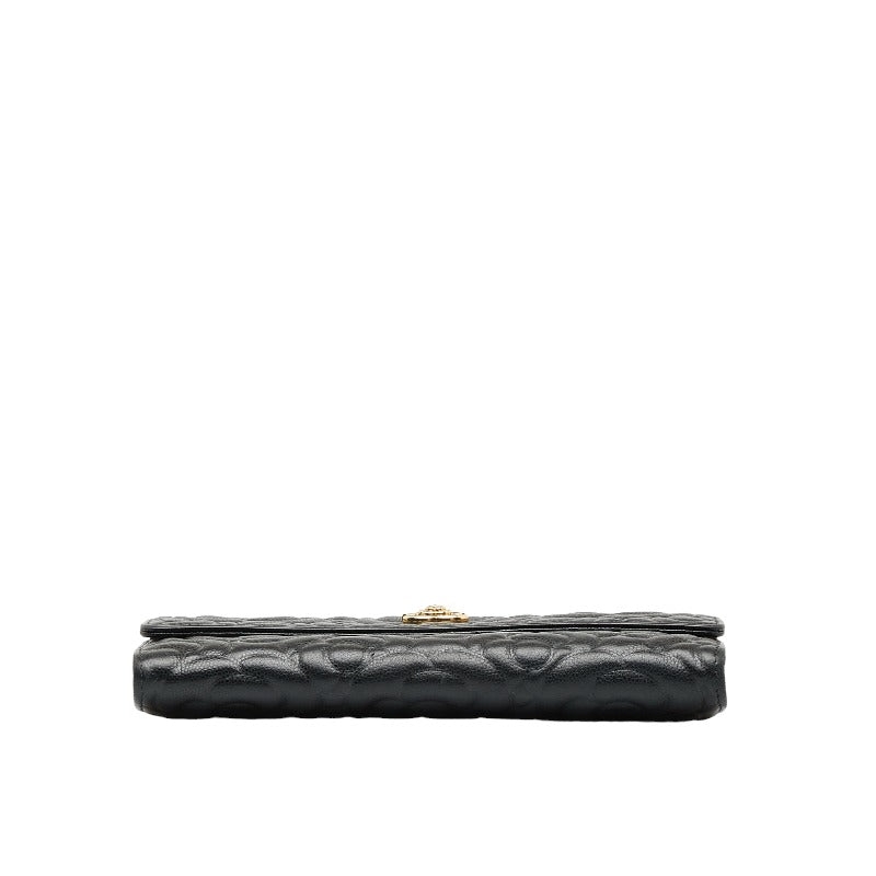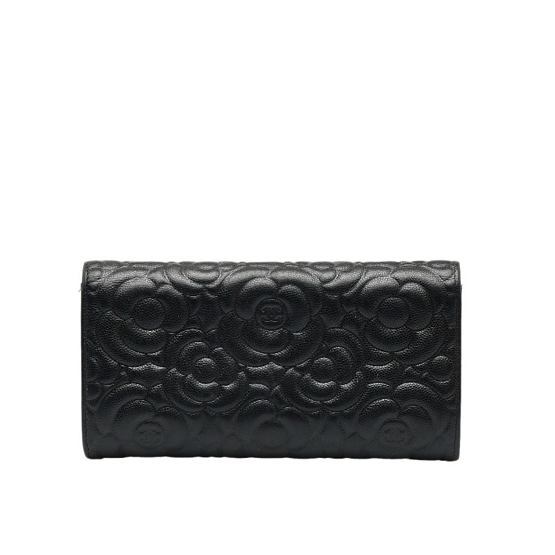 シャネル カメリア 長財布 ブラック キャビアスキン レディース CHANEL 【中古】