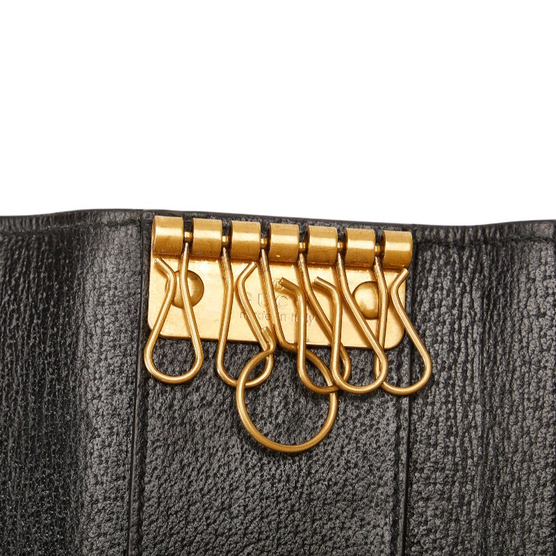 グッチ GGマーモント アンティークゴールド金具 6連 キーケース 435305 ブラック レザー レディース GUCCI 【中古】
