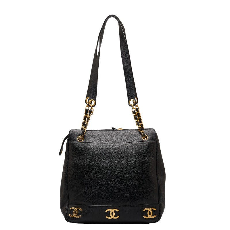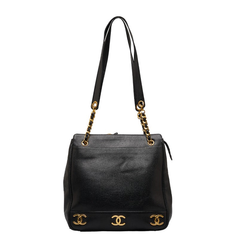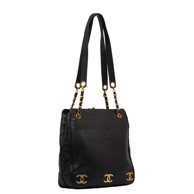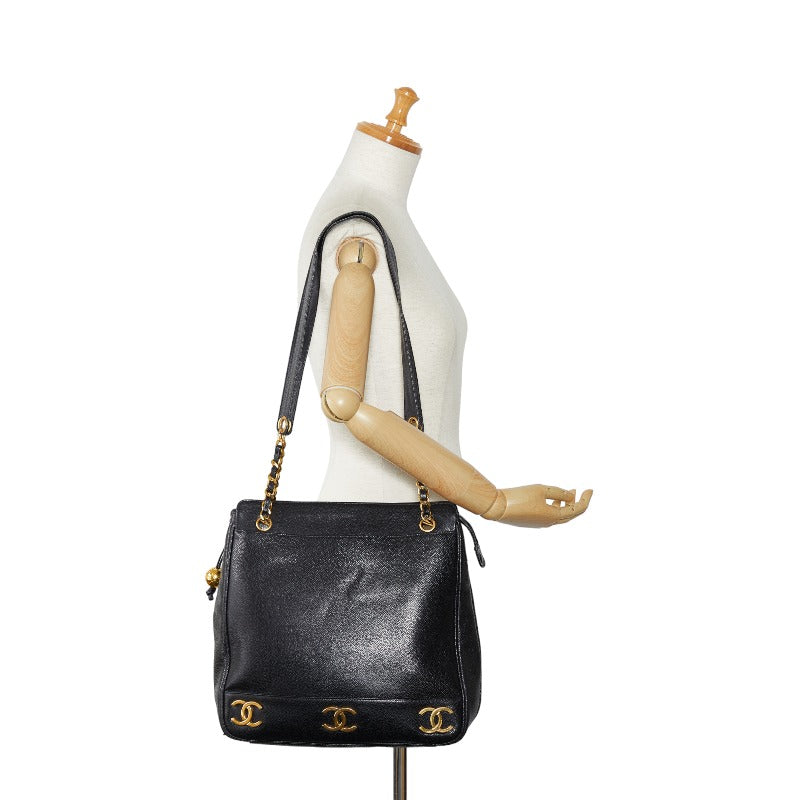 シャネル ココマーク トリプルココ ココボール チェーン ショルダーバッグ トートバッグ ブラック キャビアスキン レディース CHANEL 【中古】