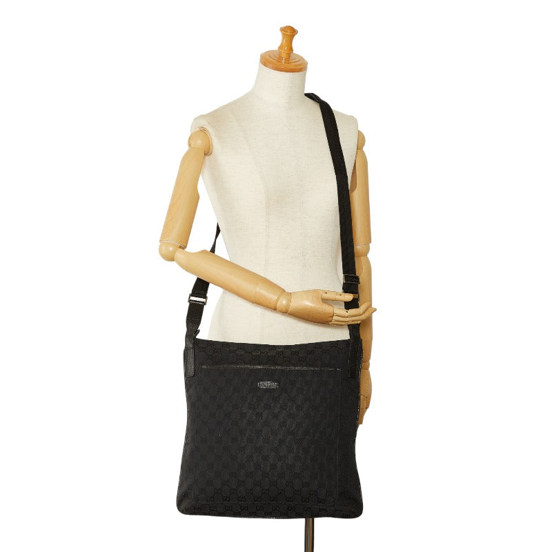 グッチ GGキャンバス 斜め掛け ショルダーバッグ 122791 ブラック キャンバス レザー レディース GUCCI 【中古】