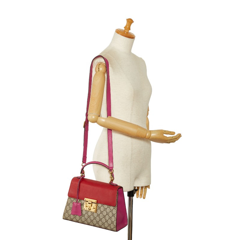 グッチ GGスプリーム パドロック トップハンドル ハンドバッグ ショルダーバッグ 2WAY 453188 ベージュ レッド PVC レザー レディース GUCCI 【中古】