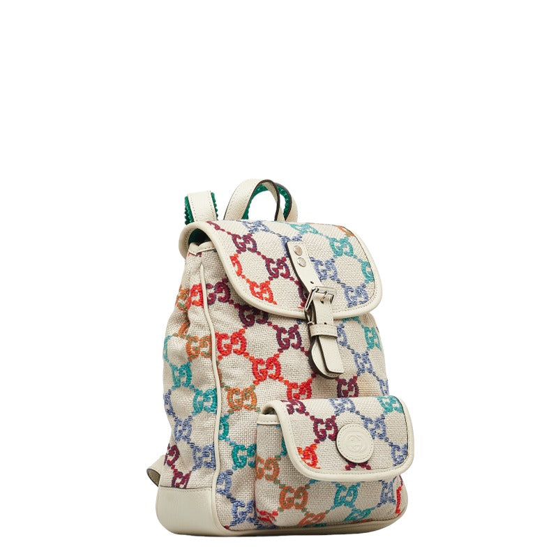 グッチ GG チルドレンズ リュック バックパック 630818 ベージュ マルチカラー ウール レザー メンズ GUCCI 【中古】