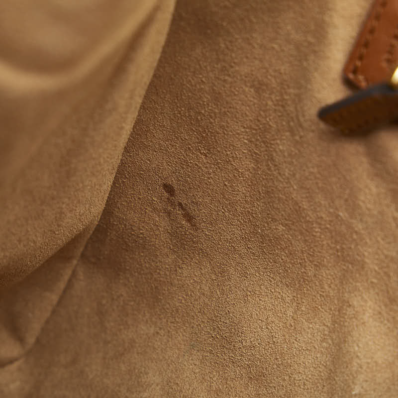 外側⇒型崩れ・レザーに線キズ・スレ・ヤケ・シワ、コバに変色・コバスレ・コバはがれ 底面⇒型崩れ・角スレ ハンドル⇒レザーにヨレ・スレ・薄汚れ・ヤケ・シワ・コバに変色・コバスレ 開閉口⇒ヨレ・コバに変色・コバスレ・コバはがれ、ベルトにヨレ・線キズ・スレ・ヤケ・シワ・コバに変色・コバスレ 内側⇒メインとポケットにスレ・薄汚れ・色あせ・黒ズミ、メインに複数の汚れ、ポケットに金具跡、レザーに線キズ・スレ・ヤケ・全体的に白い汚れ・シワ |