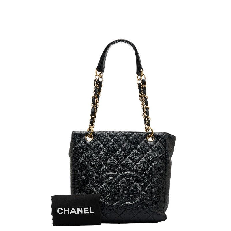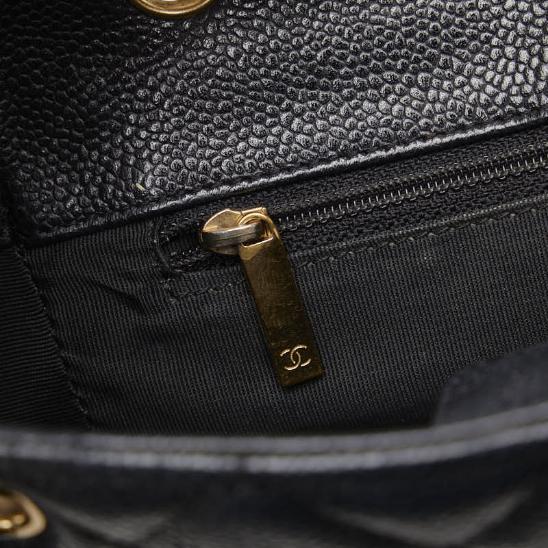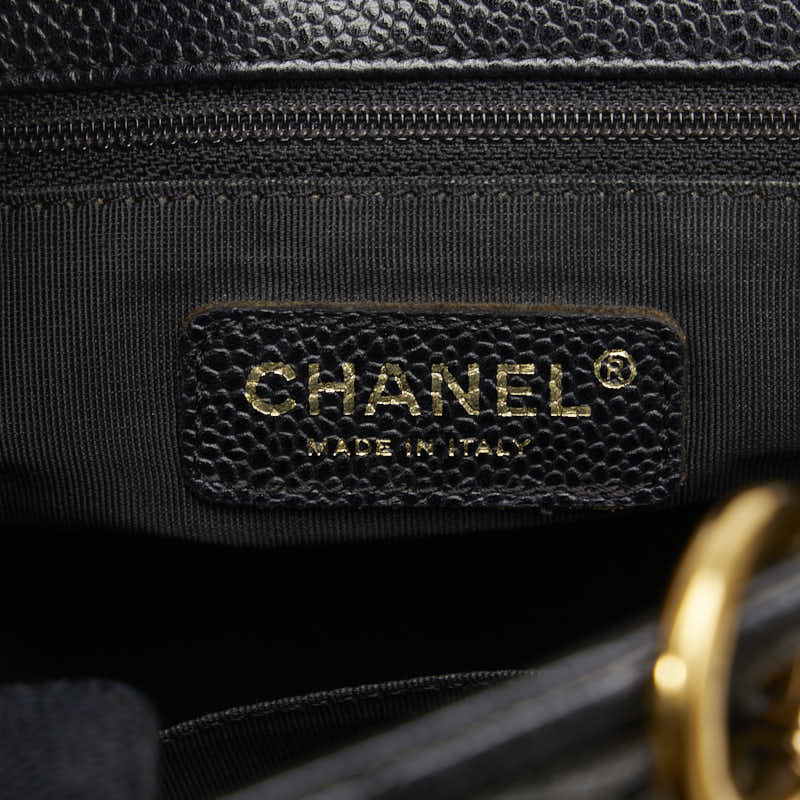 シャネル デカココマーク チェーン トートバッグ ハンドバッグ ブラック キャビアスキン レディース CHANEL 【中古】