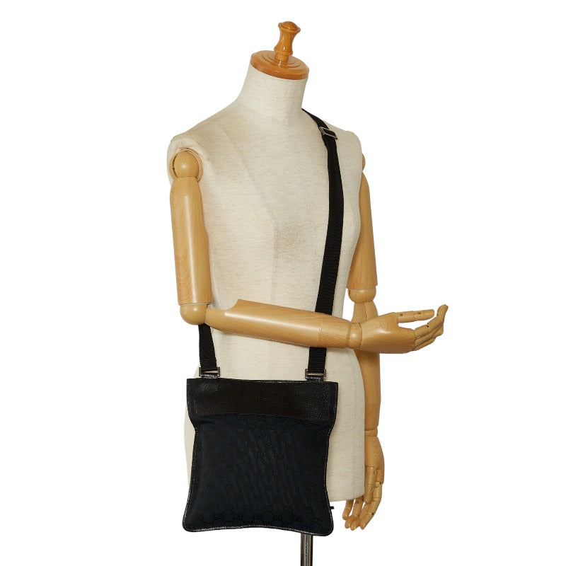 グッチ GGキャンバス 斜め掛け ショルダーバッグ 27639 ブラック キャンバス レザー レディース GUCCI 【中古】
