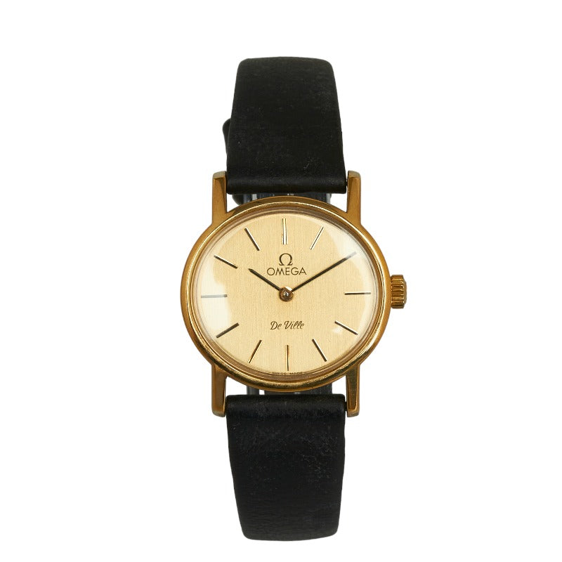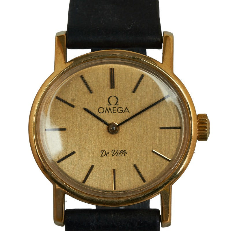 オメガ DE VILLE デビル 腕時計 クオーツ ゴールド文字盤 ステンレススチール レザー レディース OMEGA 【中古】