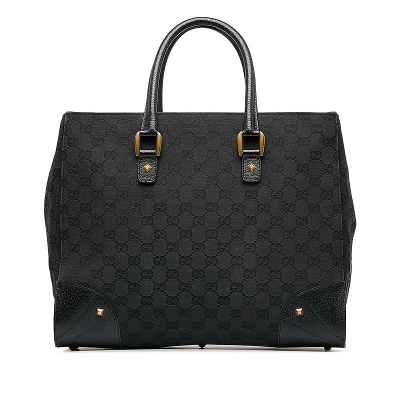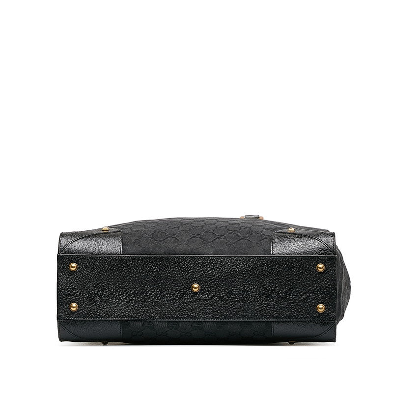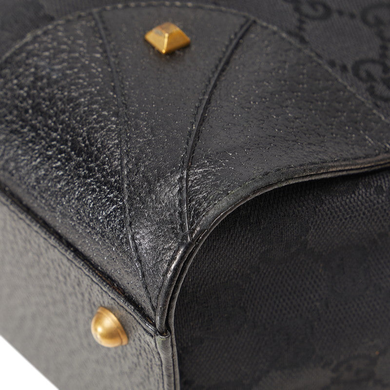グッチ GGキャンバス ゴールド金具 ハンドバッグ トートバッグ 120897 ブラック キャンバス レザー レディース GUCCI 【中古】