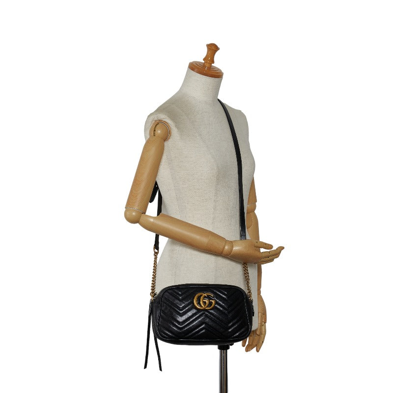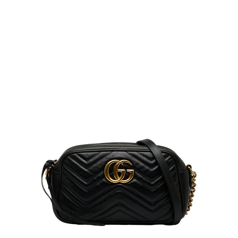 グッチ GGマーモント 斜め掛け チェーン ショルダーバッグ 447632 ブラック レザー レディース GUCCI 【中古】