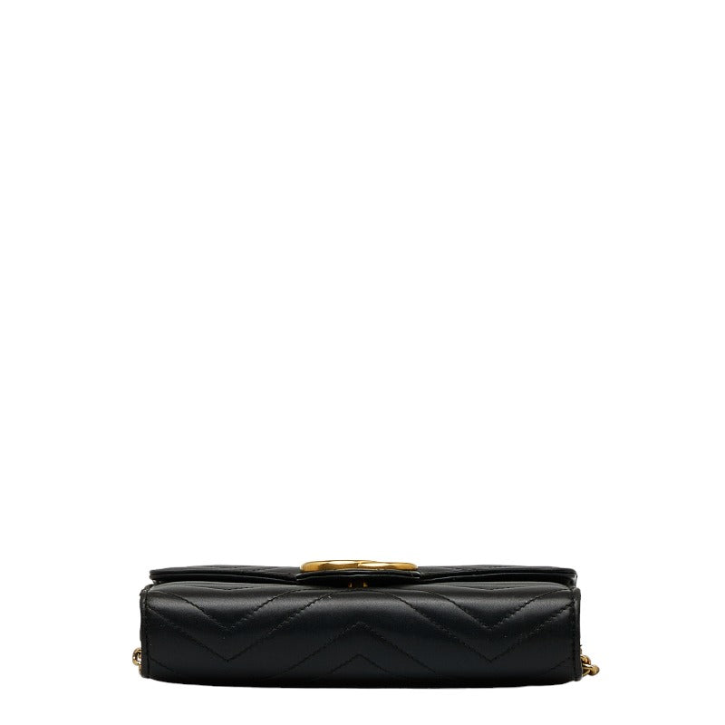 グッチ GGマーモント チェーン ウォレット ショルダーバッグ 474575 ブラック レザー レディース GUCCI 【中古】