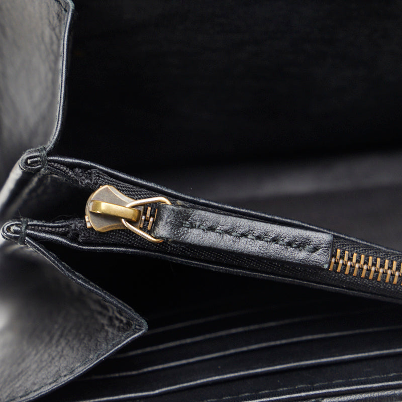 | 仕様 | 開閉式:スナップボタン 内側: オープンポケット x 3 、カードポケット x 16 、ファスナーポケット x 1 |