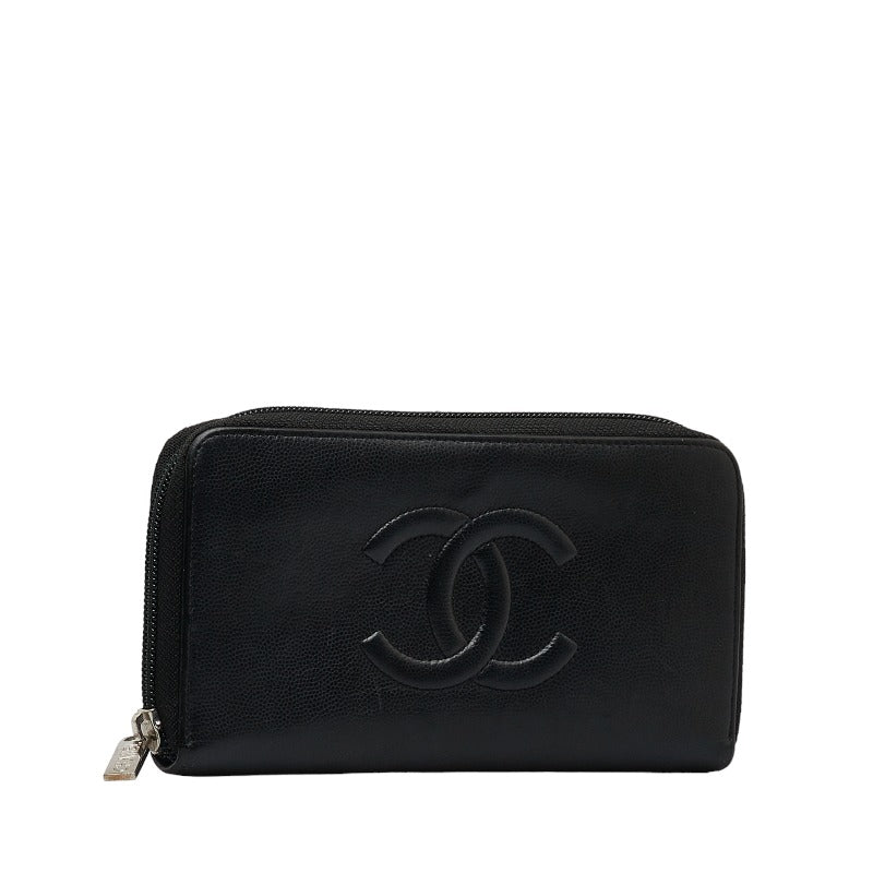 シャネル ココマーク ラウンドファスナー 長財布 ブラック キャビアスキン レディース CHANEL 【中古】
