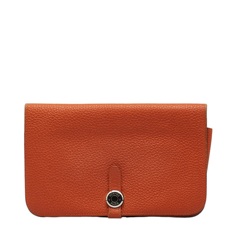 エルメス ドゴンGM 長財布 オレンジ トゴ レディース HERMES 【中古】