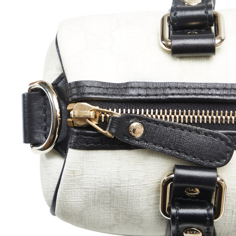 グッチ GGスプリーム ハンドバッグ ミニボストンバッグ 193604 2123 ホワイト ブラック PVC レザー レディース GUCCI 【中古】