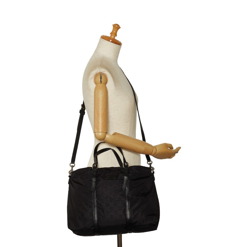 グッチ GGナイロン トートバッグ ショルダーバッグ 2WAY 510332 ブラック ナイロン レザー レディース GUCCI 【中古】
