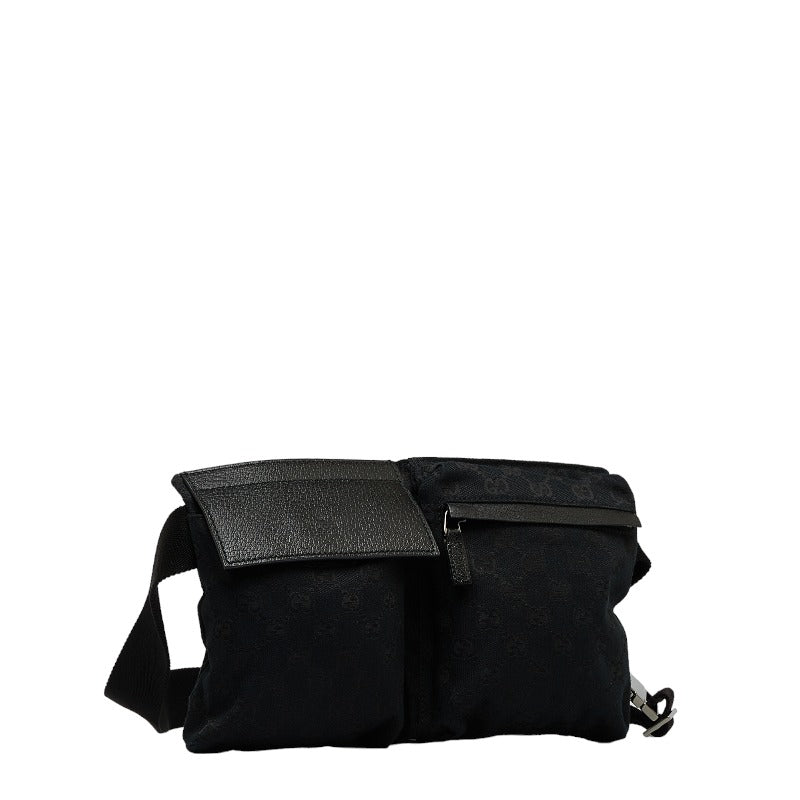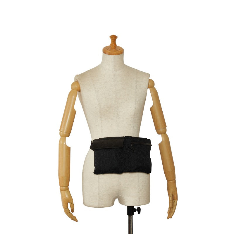 グッチ GGキャンバス ウエストバッグ ボディバッグ 28566 ブラック キャンバス レザー レディース GUCCI 【中古】