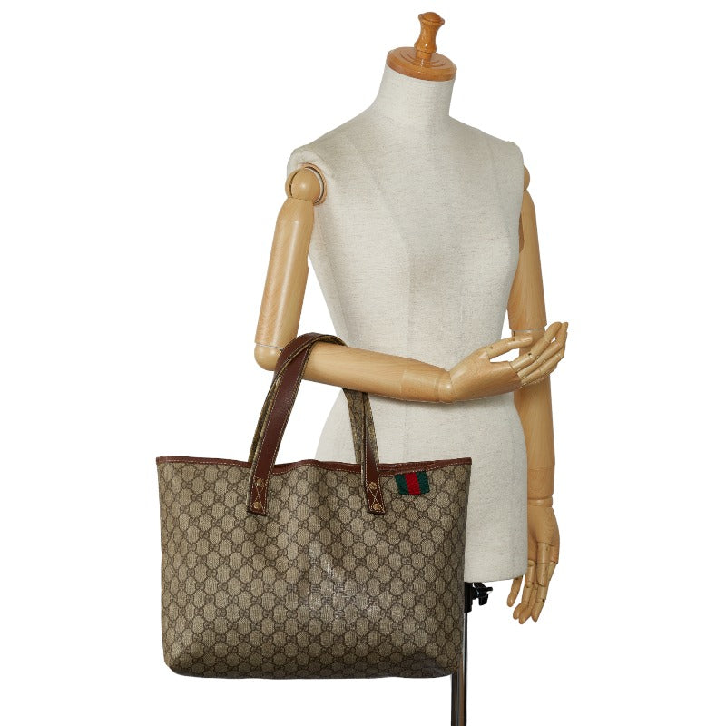 グッチ GGスプリーム シェリーライン ショルダーバッグ トートバッグ 211134 ベージュ ブラウン PVC レザー レディース GUCCI 【中古】