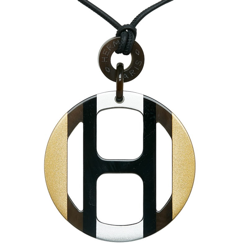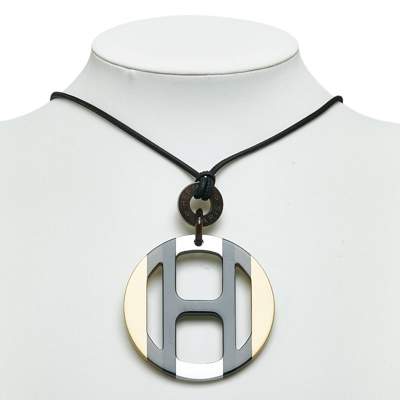 エルメス ホーンネックレス Hエキップ ネックレス ブラック マルチカラー バッファローホーン レディース HERMES 【中古】