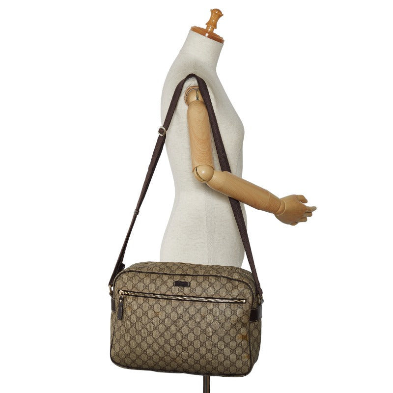 グッチ GGスプリーム 斜め掛け ショルダーバッグ 211017 ベージュ PVC レザー レディース GUCCI 【中古】