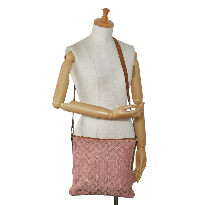 グッチ GGキャンバス 斜め掛け ショルダーバッグ 113013 ピンク ベージュ キャンバス レザー レディース GUCCI 【中古】